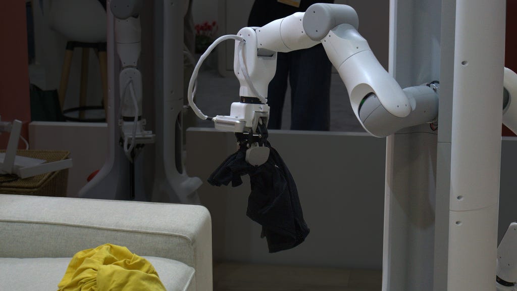 For the demo, the robot picked up a single item of clothing off a couch one at a time to load it. Ajay Kumar/CNET