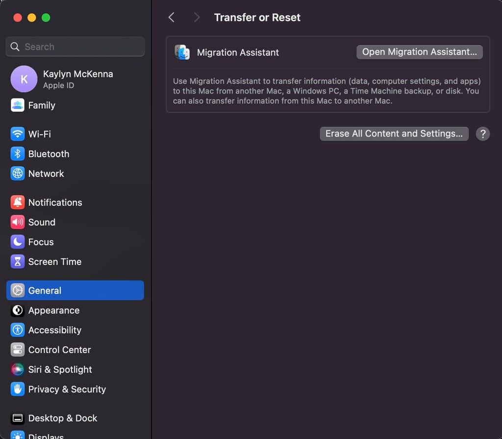 Newer MacBook models have an erase assistant built into their settings to help you quickly clear your data and factory reset your MacBook. If your MacBook is running on MacOS Monterey or later and has either an Apple Silicon or an Apple T2 security chip, you should have access to the Erase All Content and Settings function.