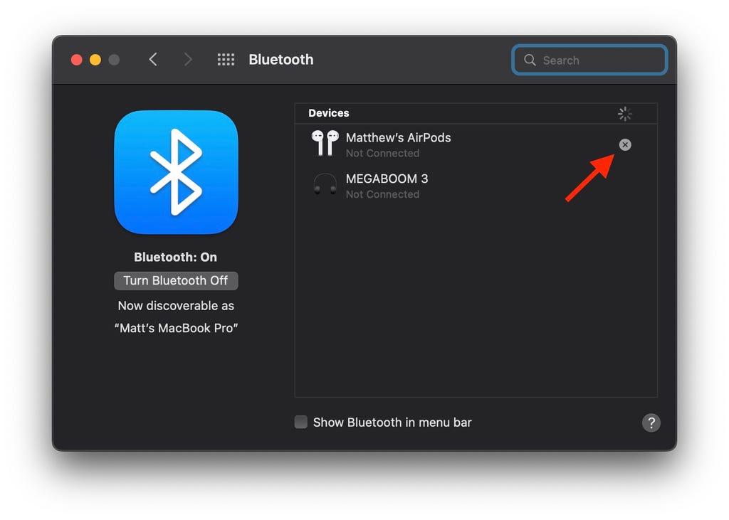 If you're handing down your old Mac to your kid or someone else in your house, then it's a good idea to unpair any Bluetooth devices so your mouse or keyboard controls the new Mac without interfering with the old one. Go to System Preferences > Bluetooth, mouse over the device you want to unpair, click the X button to the right of its name, then click Remove.