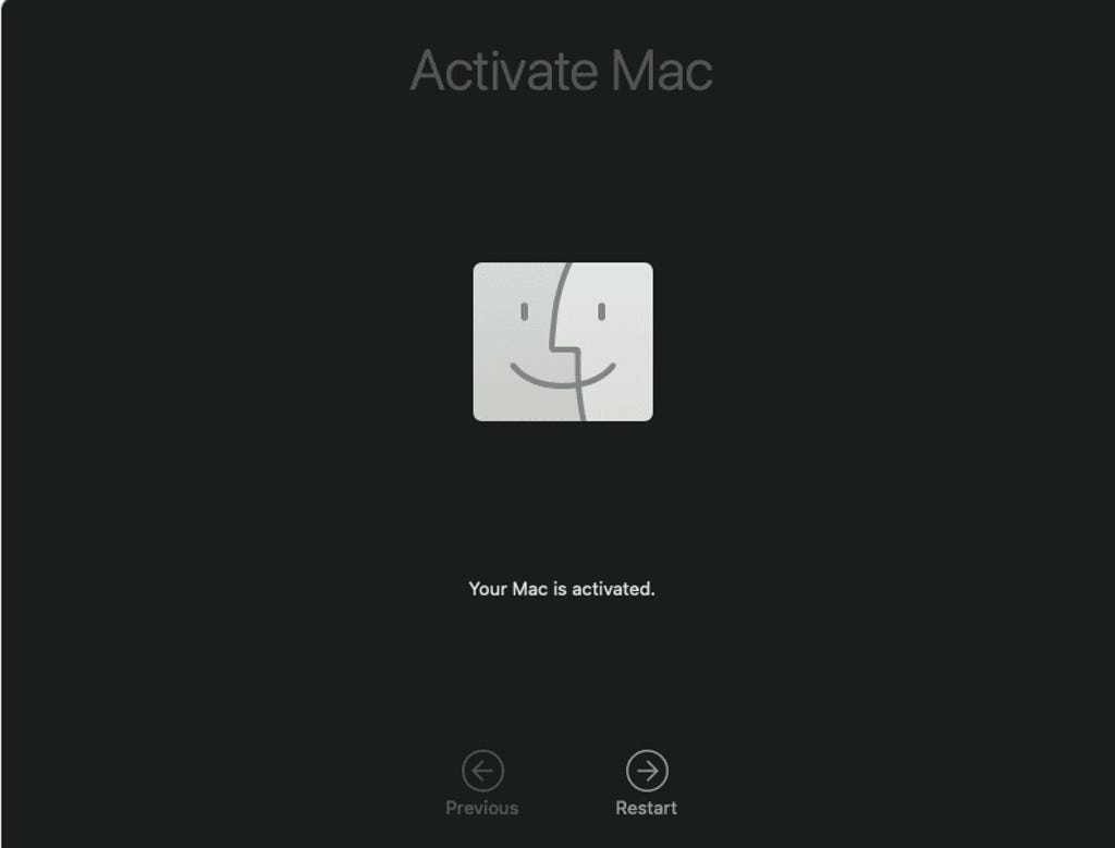Once the reset is complete, you'll see the Activate Mac screen, indicating that your MacBook has been reset to factory settings and can now be sold or recycled. If you're keeping the laptop or want to set it up to give to a family member, you can use the Setup Assistant to begin the setup process from scratch.