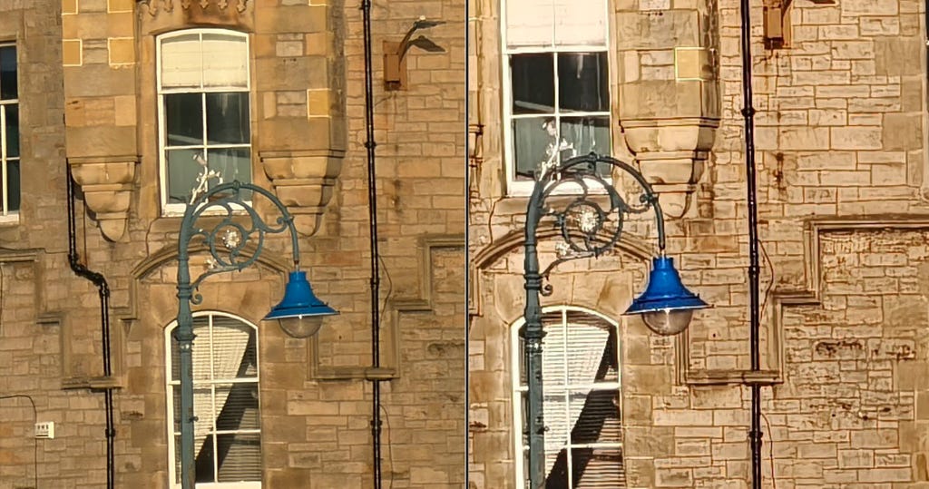 This is an odd one; at max zoom, the Oppo has catastrophically failed to render the details on the side of the building.