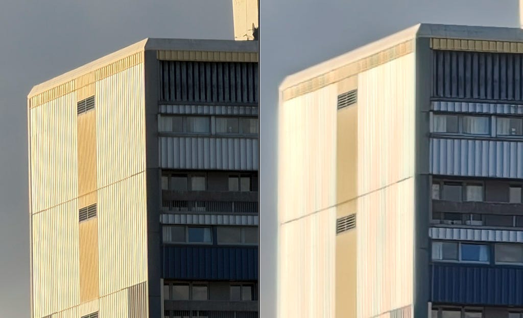 The Oppo Find X9 Pro does have a secret weapon when it comes to zoom, though, in the form of the Hasselblad telephoto zoom accessory. This optional lens attaches to the phone and gives huge zoom lengths -- up to 40x -- while retaining excellent quality. You can see the difference here in the maximum zoom range of the iPhone against the zoom of the Find X9 Pro with the lens attached; it's both closer and sharper.