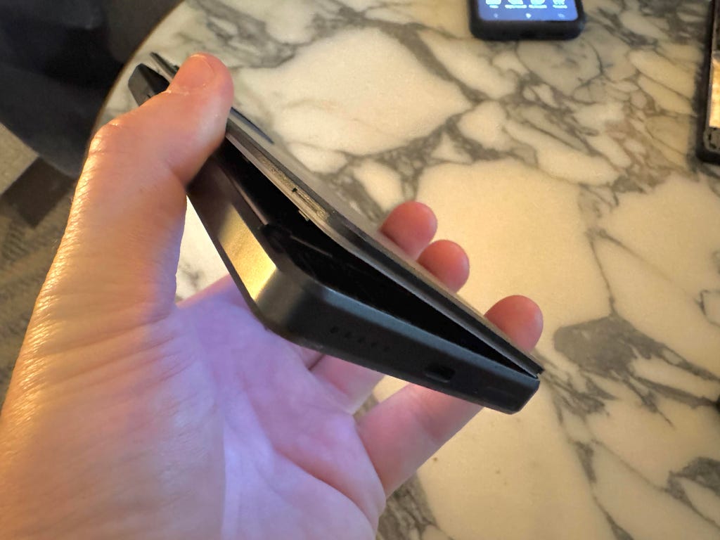Though Punkt also has a minimalist "dumb" phone line with the MPO2, the upcoming MC03 (which has started delivering units to Europe and will start shipping to the US in spring) is a full-fledged $700 smartphone that iterates on its predecessor, the MCO2. It adds a few notable hardware upgrades, like switching to a 120Hz OLED display and making the battery easily removable and replaceable (by the user or through Punkt, either of which costs $50), as well as better cameras. Despite the swappable battery, the phone is still IP68 certified to keep out dust and water, with a rear cover that I was able to pop off and snap back on securely during my in-person preview.