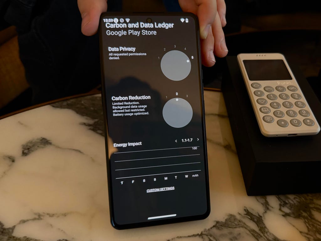 Many phones these days will single out which apps are using the most battery life. The MC03 has the same feature, framing it as a "carbon ledger" to draw an even more direct causality between the apps people use and how much energy it takes to run them.