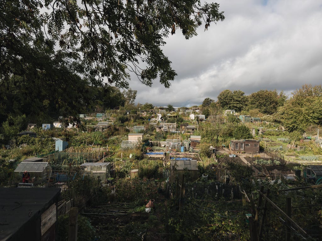 Taken with the iPhone 15 Pro Max's standard lens, this image, which overlooks some allotments, has no discernible subject or purpose. Andrew Lanxon/CNET