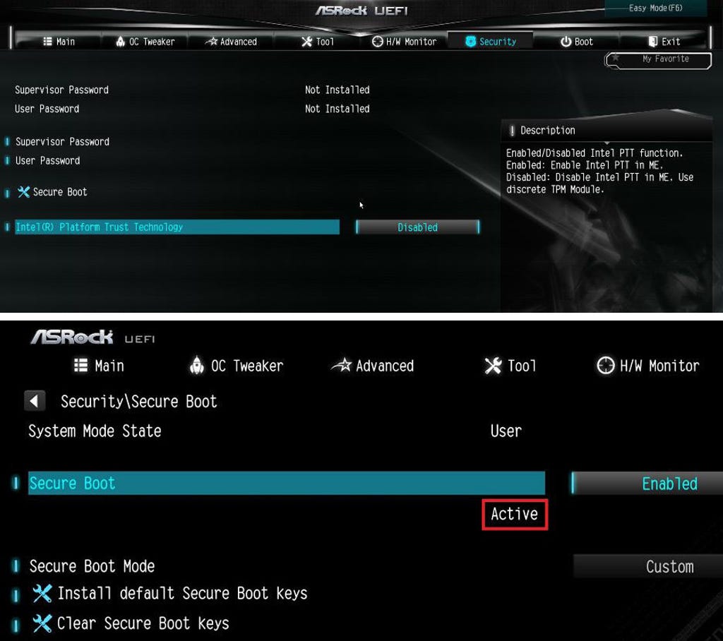 Enable Secure Boot and TPM 2.0