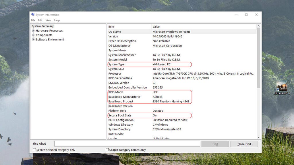 An example of the msinfo32 program. The sections in red are the most important for upgrading to Windows 11. "System Type" has to be "x64-based" and BIOS has to be "UEFI." BaseBoard Manufacturer and Product aren't requirements themselves, but making a note of what they are will help you access the BIOS and find more specific help if needed. Lastly, Secure Boot doesn't have to be on, but the BaseBoard/motherboard has to at least be Secure Boot compatible. Unless you know why you'd want it off, it's better to turn it on. CNET