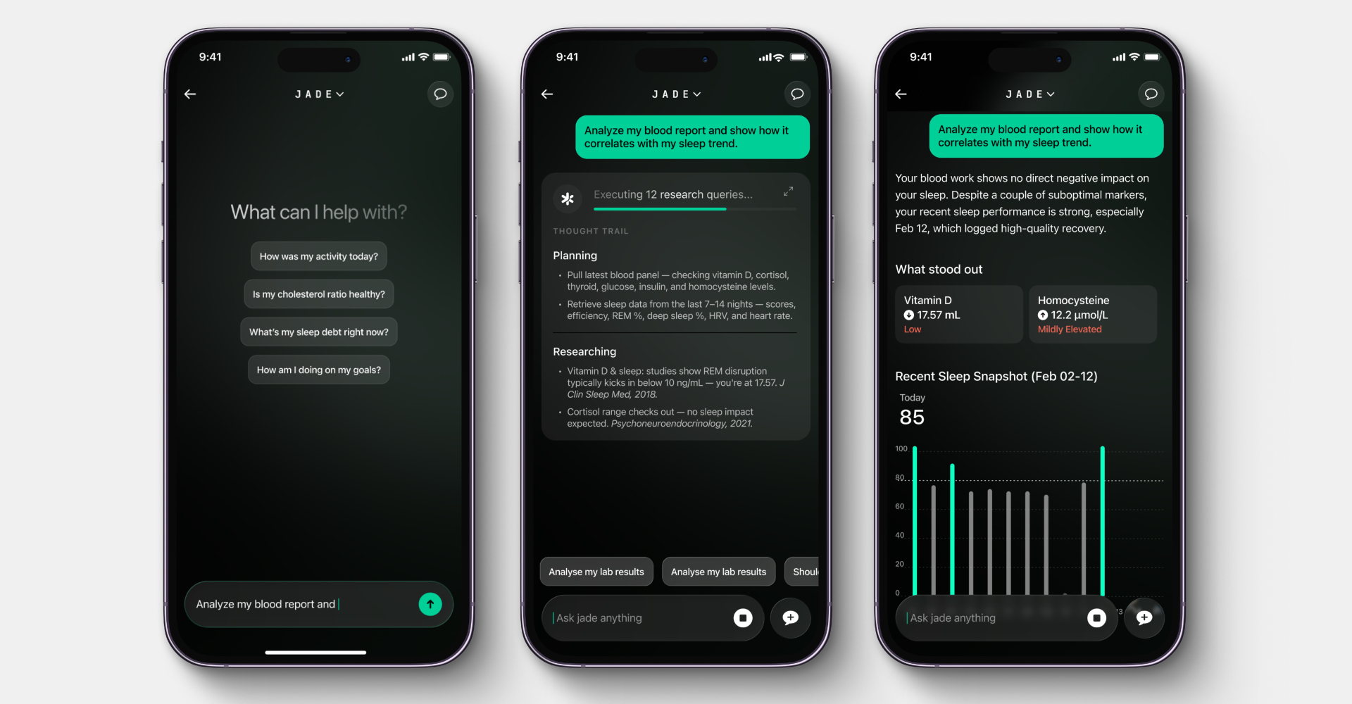 “Most AI tools today look backward at your data,” he said. “Jade is built to react to your health in real time and surface actions users can take.”