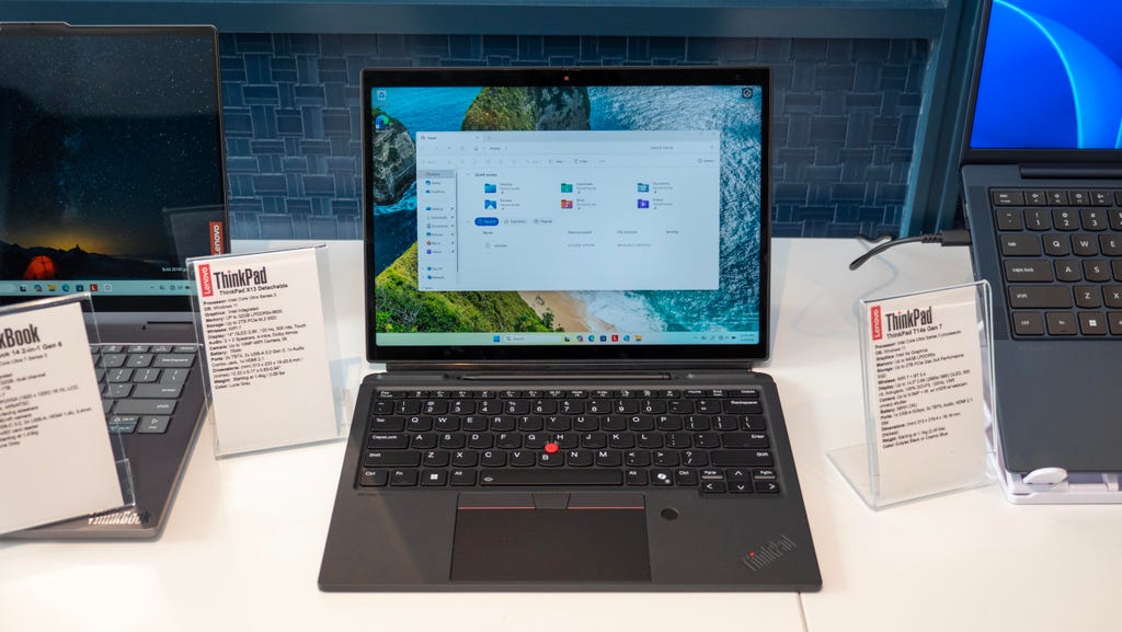 Lenovo also introduced a larger, less rugged tablet in the ThinkPad X13 Detachable. It has a 13-inch display that you can detach from the keyboard for a true tablet experience. Its battery and USB-C ports are also user-replaceable, again showing Lenovo's focus on repairability and product longevity. The ThinkPad X13 Detachable won't start shipping until Q3, starting at $1,999.