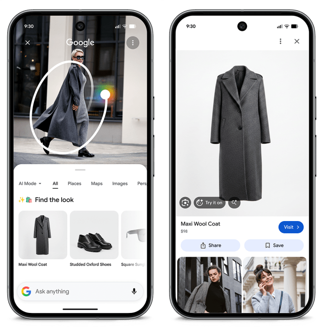 As for the new Pixel features, the tech giant is updating its Circle to Search feature with a “Find the Look” tool that identifies individual pieces of an outfit. A new “Try It On” tool allows Circle to Search to pull outfits from videos, social content, or images received in messages to see how clothing looks on the user.