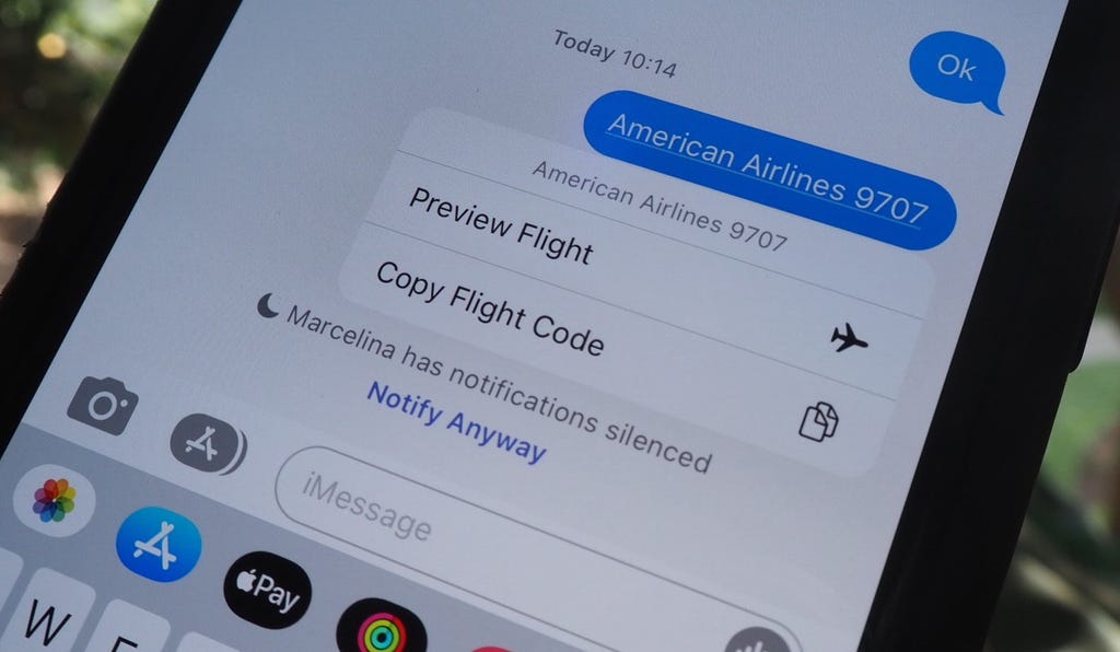 Launch the native Messages app on your iPhone and open the text message thread that contains your flight information. You'll know the flight tracker feature works when the text with the flight information appears underlined, which means it's actionable and you can tap on it.