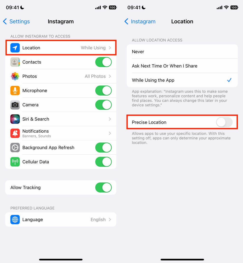In the Settings app, choose an application (like Instagram, for example), tap Location and then toggle off Precise Location. Any app with Precise Location off will only know your approximate location, within a few miles.