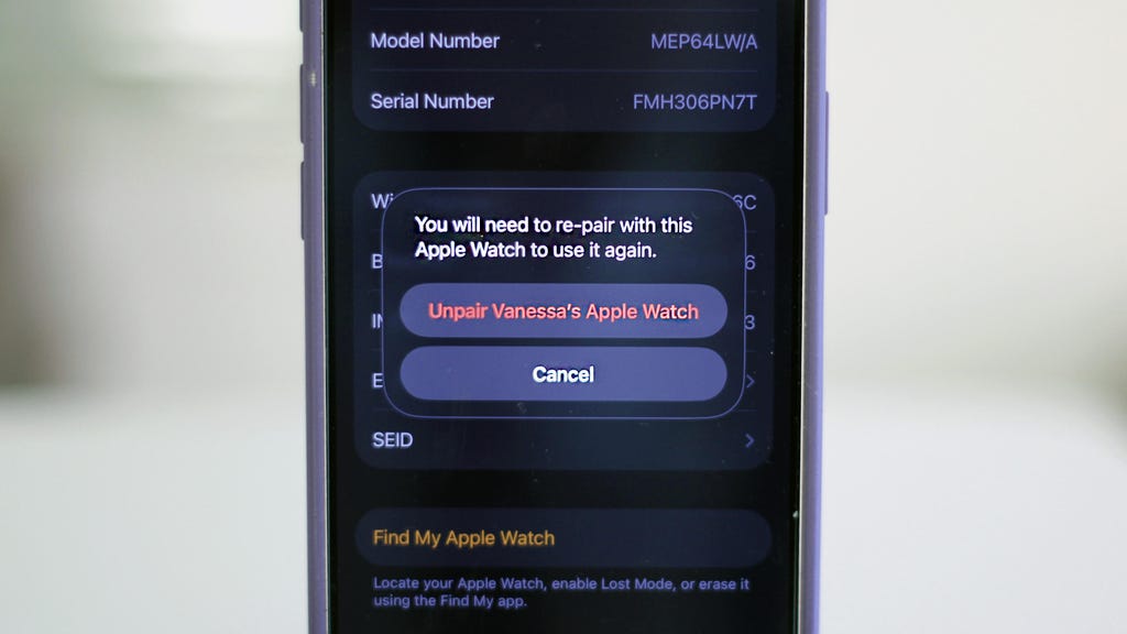 This step will erase your old Apple Watch and remove it from your account. Vanessa Hand Orellana/CNET