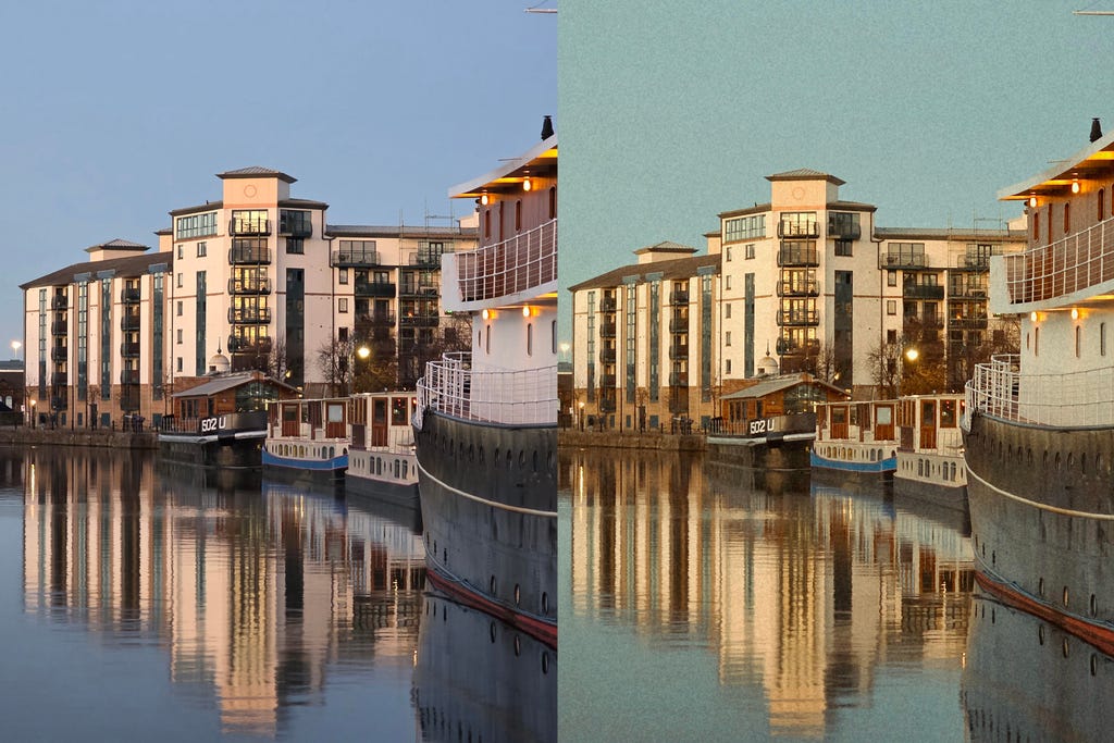 The original image (left) and the edited version using my custom filter (right). I love the warmer tones, the teal sky and the film grain. It's given it a very vintage look and I really like it. Andrew Lanxon/CNET