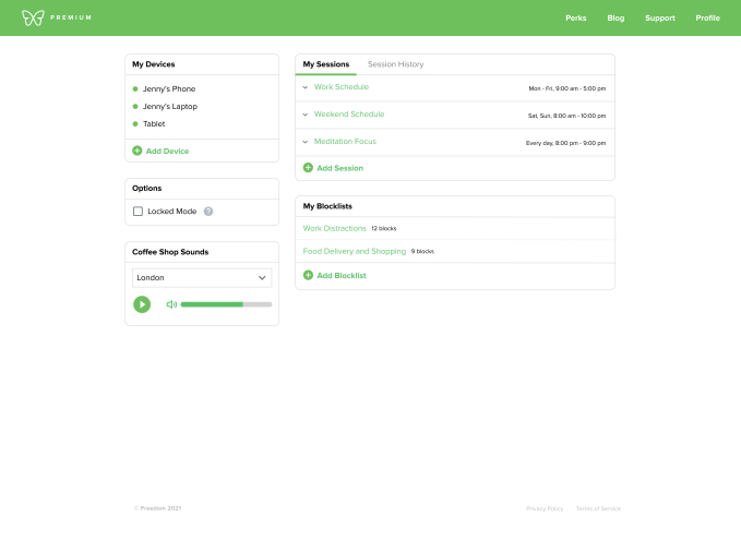 If you’re someone who listens to specific sounds to help you focus, Freedom offers a variety that you can listen to. For example, you can listen to the sounds of a coffee shop in a city like New York or Berlin, the sounds of birds chirping, calming instrumentals, and more.