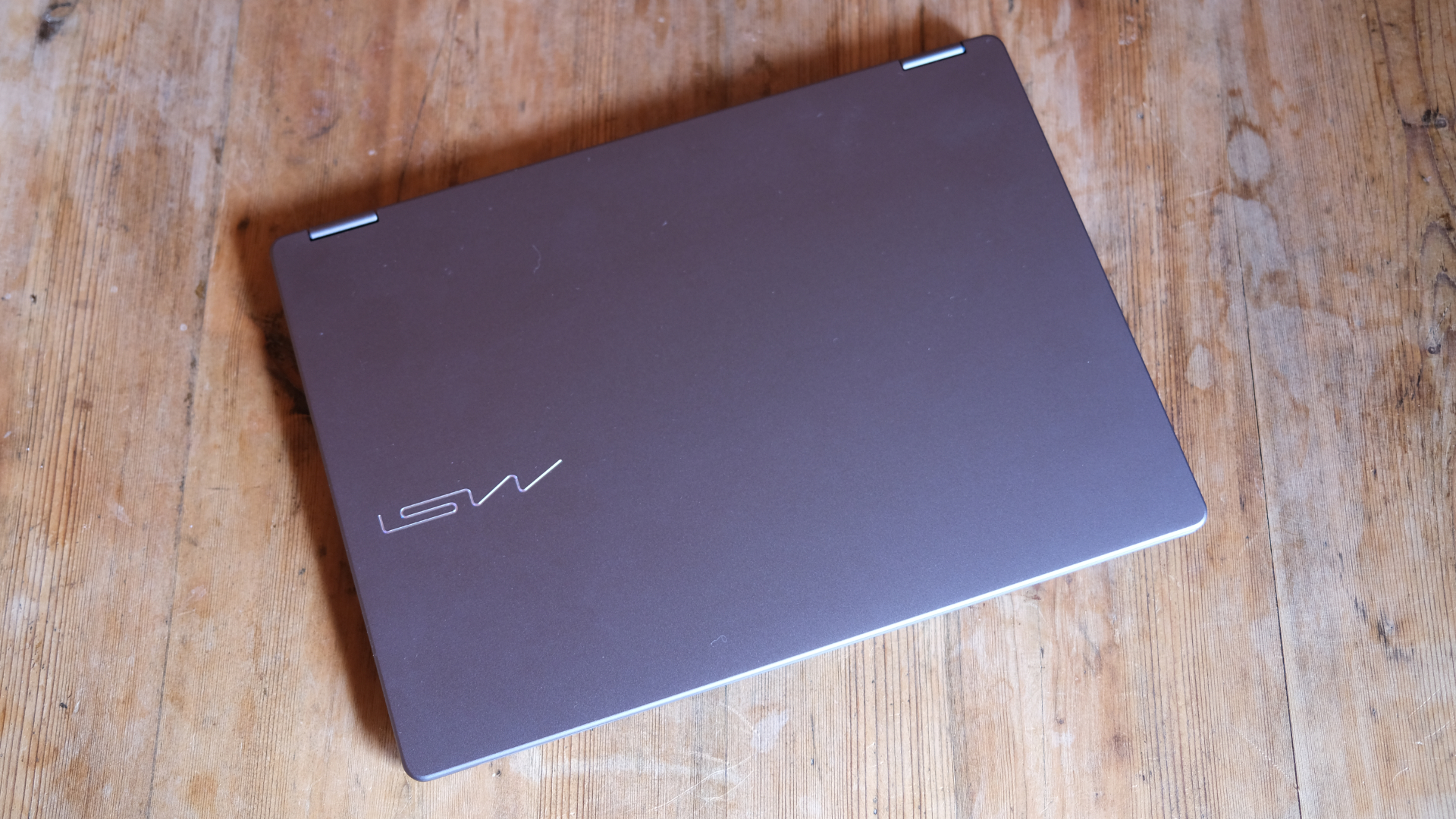 It's all-metal in its build, with rounded edges and quite a distinct two-part look, with the base and the lid deliberately not lining up with an invisible seam. The two are joined by a hinge that lets the screen flip all the way back around when needed, since this is a two-in-one.