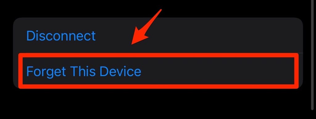 4. Choose Forget this device. You may have to scroll down to find this option.