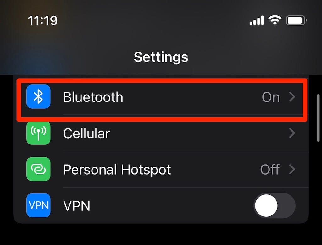 Open the Bluetooth section in your iPhone's Settings menu. Screenshot by Lisa Eadicicco/CNET