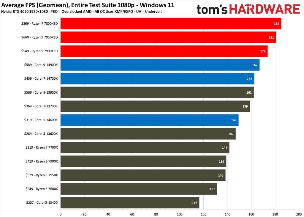 AMD's Ryzen 7 9800X3D is now the fastest gaming chip on the planet, and it isn't even close — the fastest AMD CPU for gaming is a whopping 35% faster in 1080p gaming than Intel's competing flagship Core Ultra 9 285K, and 30% faster than Intel's previous-gen flagship, the Core i9-14900K. This chip has been hard to find, but it's definitely worth continuing to look for.