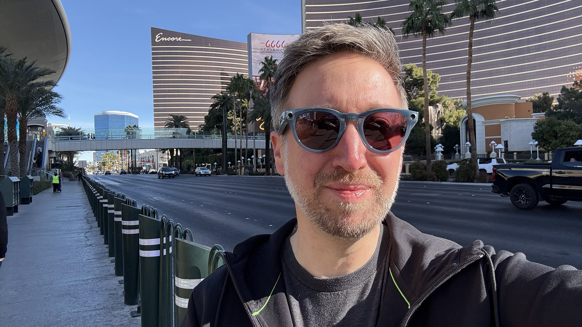 Wearing the Ray-Ban Meta glasses on the Las Vegas Strip (Image credit: Future)