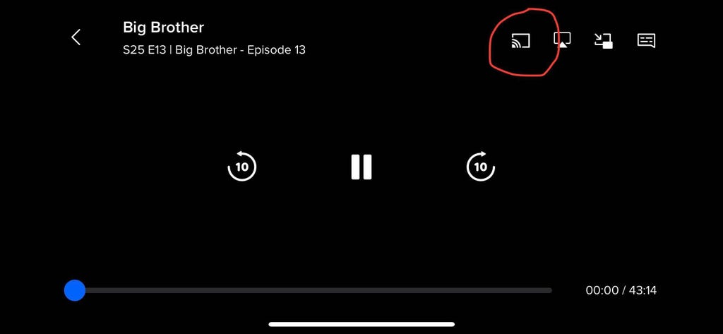 The Chromecast icon is circled in this screenshot of the Paramount Plus app. Screenshot by Mike Sorrentino/CNET