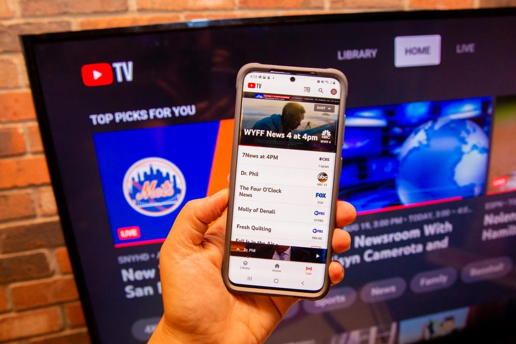 YouTube TV on a phone that's connected to the app on a television. Sarah Tew/CNET