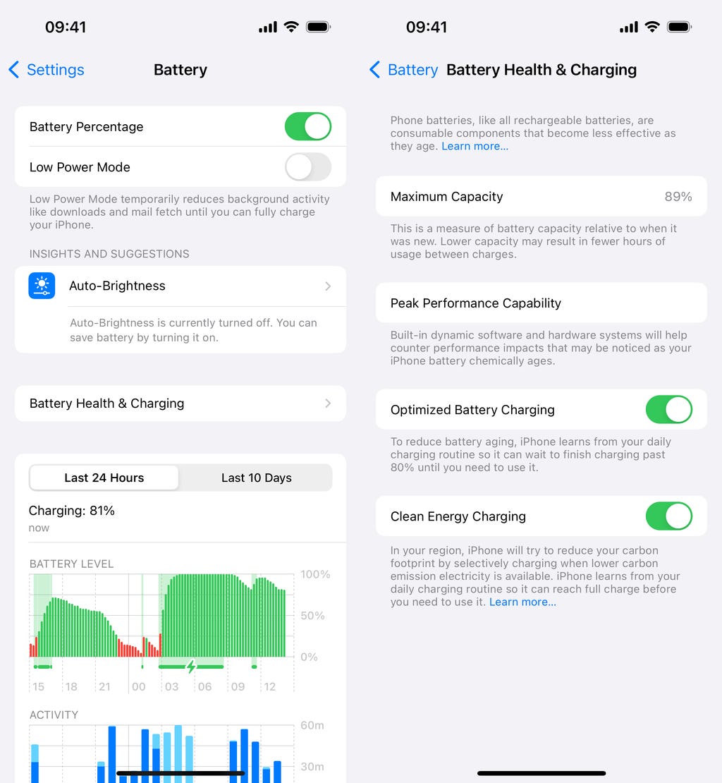This can help reduce battery aging, and although the setting should be enabled by default, it's still good to check if it's on. In Settings, go to Battery > Battery Health & Charging and make sure that Optimized Battery Charging is toggled on.