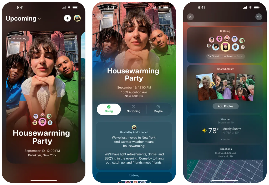 Invites lets you create and share invitations, RSVP to events, contribute to Shared Albums, and curate event soundtracks.