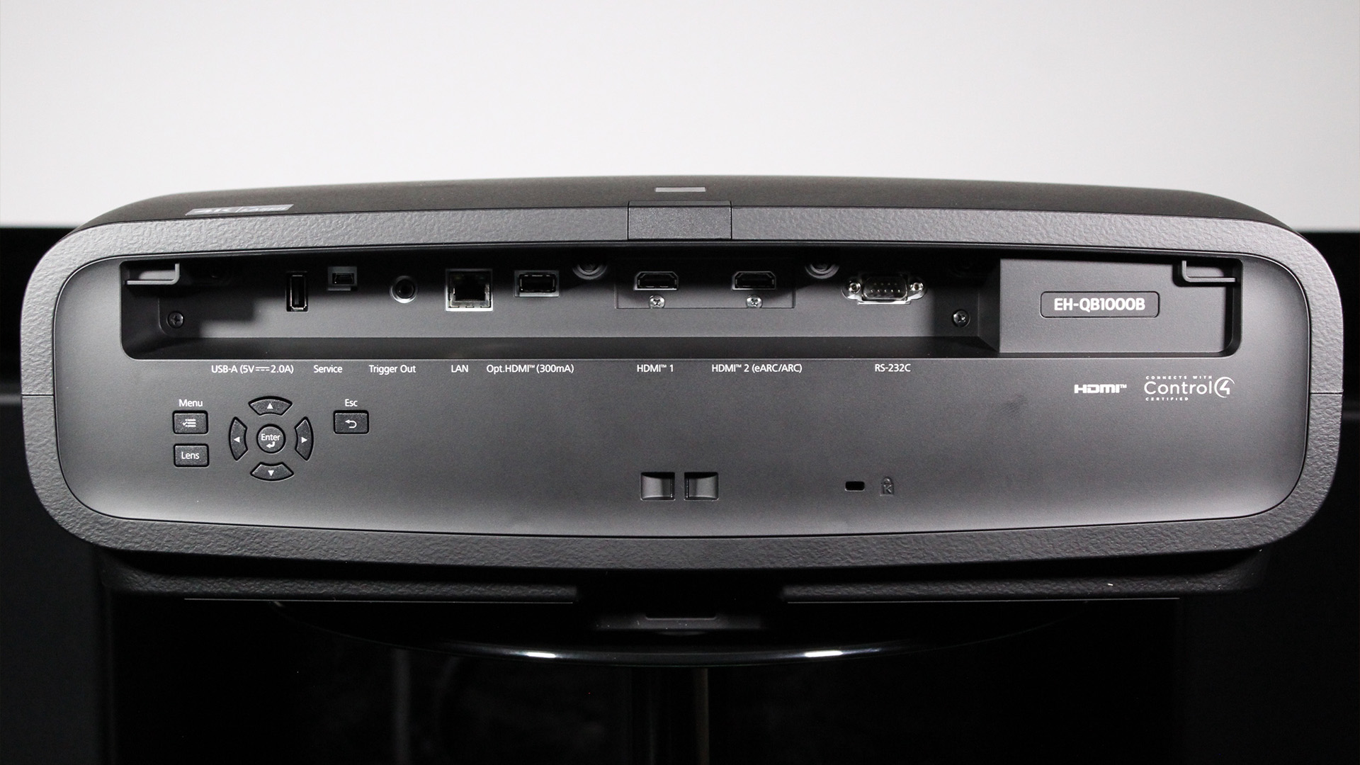 The Epson EH-QB1000 looks identical to the earlier EH-LS12000, with the same imposing chassis and central lens flanked by large forward-firing cooling grilles. The bodywork is solid and well-built, the motorised lens cover is retained, and there are basic controls at the rear, along with a removable cover to keep things tidy. There’s also an optional ceiling mount if necessary.