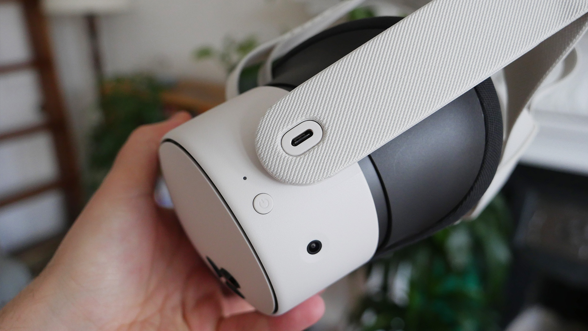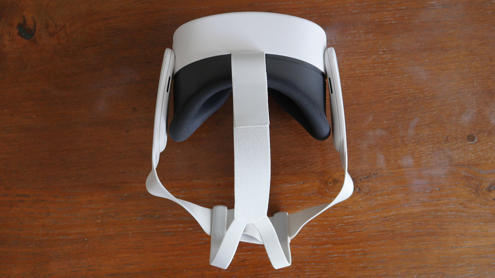 Rather than the Quest's 3 cartoon-eyes-like cutouts, the S has just two groupings of cameras and sensors – and, therefore, actually looks a bit stealthier (despite the white design). It's also slightly less rounded than the Quest 3 in a few places, with a boxier build that's closer to the Quest 2.