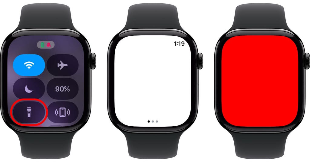 You've probably used the flashlight feature of your phone dozens of times, but did you know the Apple Watch can also be a flashlight? Instead of a dedicated LED (which phones also use as a camera flash), the watch's full screen becomes the light emitter. It's not as bright as the iPhone's, nor can you adjust the beam width, but it's perfectly adequate for moving around in the dark when you don't want to disturb someone sleeping.