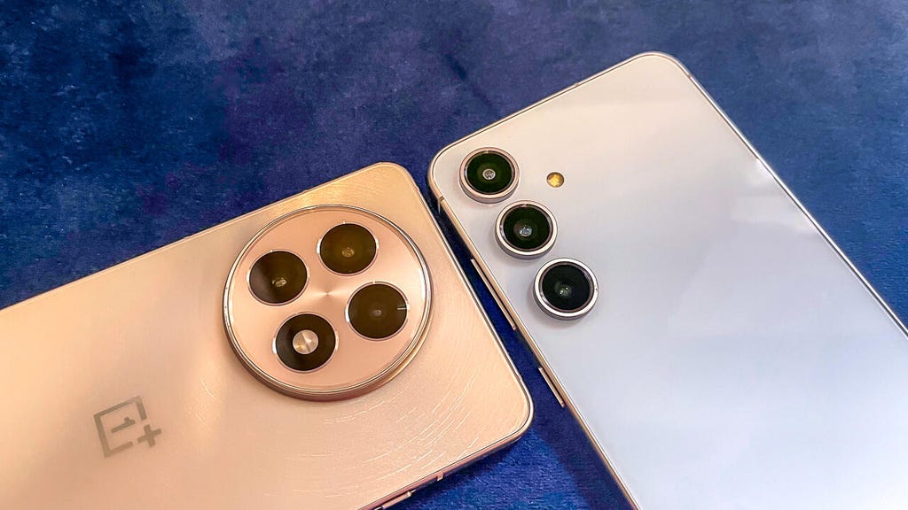The cameras on the OnePlus 13R and the Samsung Galaxy S24 FE. Mike Sorrentino/CNET