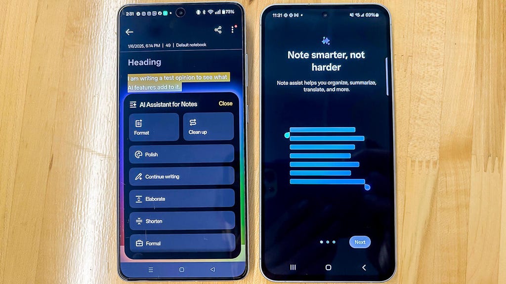 The AI Note features on the OnePlus 13R and the Samsung Galaxy S24 FE. Mike Sorrentino/CNET