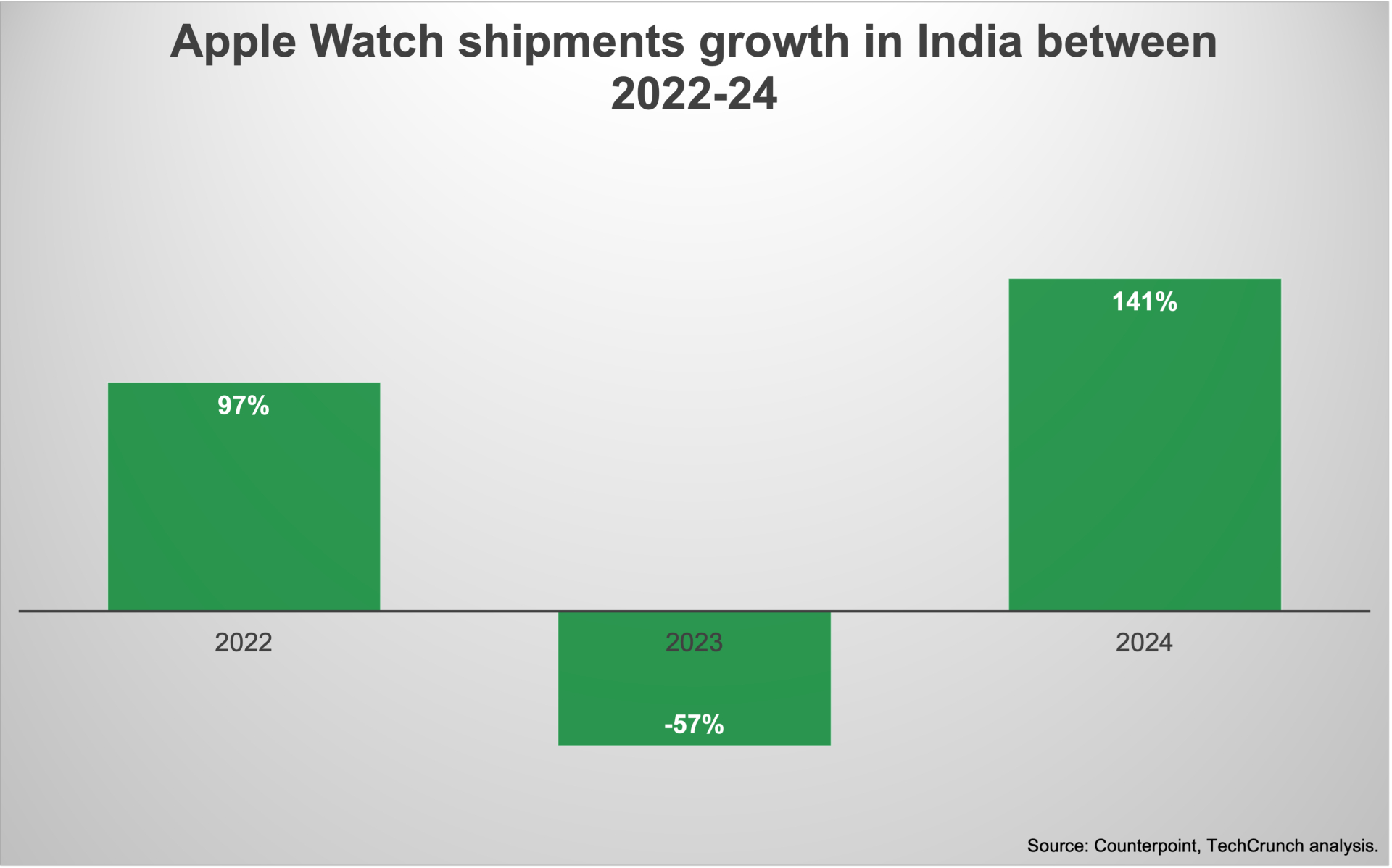 As the broader market faltered, Apple Watch saw a 141% increase in its shipments last year. That growth bucked a 57% decline for the company in 2023, according to Counterpoint.