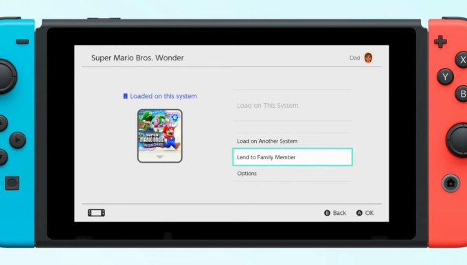 The Virtual Game Cards also come with the functionality to lend games to anyone in your Nintendo Family Group, which includes up to eight people, via local Wi-Fi. Users can only lend one game at a time to a particular person, and at the end of a 14-day borrowing period, the games return automatically to the lender.