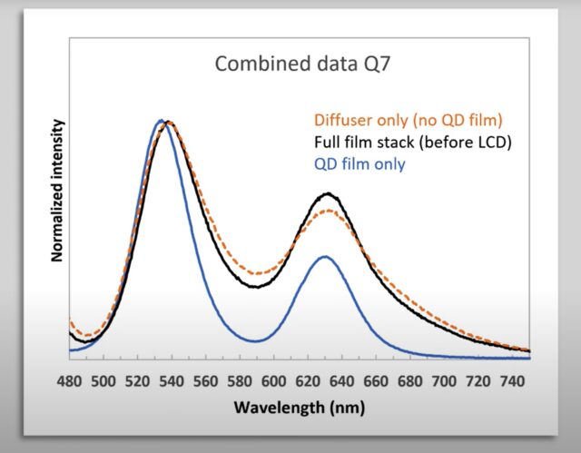 “There is an almost full continuum of TV designs, ranging from using only phosphors to using only QDs, with any type of mix in between,” Virey told Ars.