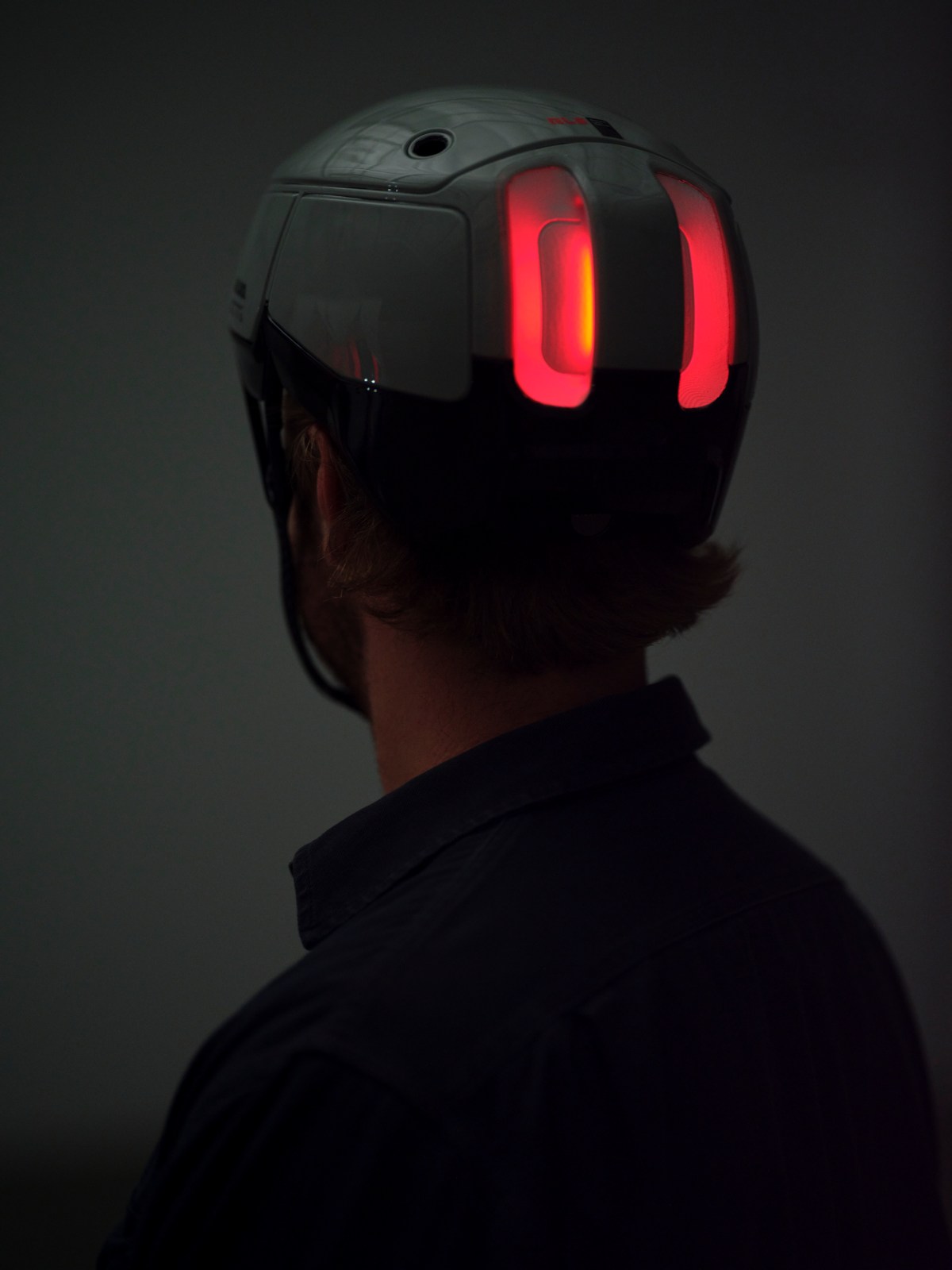 And lastly, Also is revealing an innovative new bike helmet that it says can seriously reduce the risk of head injury in a crash. Dubbed the Alpha Wave Helmet, it uses Release Layer System technology to reduce the rotational energy transferred to the wearer in an impact. In doing so, it can potentially decrease the chance of traumatic brain injury by over 60 percent, Yu says, citing independent studies. The helmet also includes built-in lights, microphones, and speakers for safe hands-free calls or music.