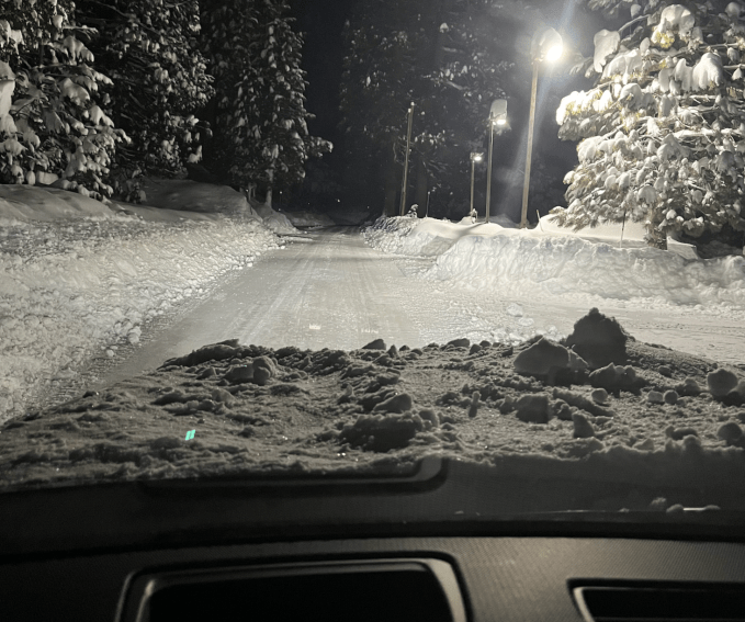We approached a Tesla Supercharger in Tahoe City that appeared on the MyCadillac app, but when we plugged in to the designated stall, nothing happened. We searched for answers, discovering that even Tesla stations that accept non-Tesla vehicles throttle energy to 6 kilowatts per hour anyway, but it was a frustrating experience. A nearby EVGo had shuttered a month prior. ChargePoint’s two units at the Tahoe City Public Utility lot were, respectively, broken and willing to connect but not to actually charge anything. We briefly contemplated a 35-mile drive to Incline Village, did the math on what stranded would actually look like, and decided against it. Then I discovered an Electrify America station 12 miles away. We drove through gathering snow, arrived shortly before 11 p.m., and it worked. We sat there for an hour fighting exhaustion before driving home.