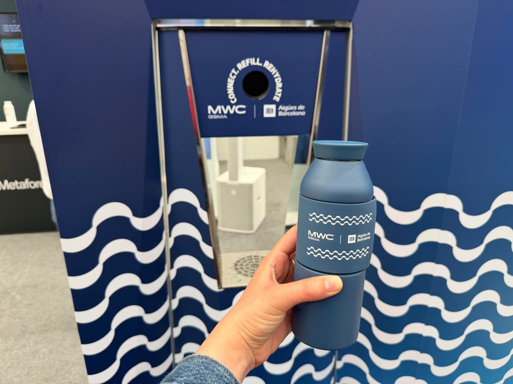 Water bottle dispensers are a staple at airports, but water supply company Aigues de Barcelona wants to help you track your hydration levels. Using custom bottles with NFC chips embedded in the lid, you can scan the bottle at one of the company's dispensers, and then track your water intake in an accompanying app. You'll also see how much plastic you've saved and the reduced carbon footprint. Aigues de Barcelona has installed the dispensers in some venues and sports arenas, but has yet to arrive in airports.