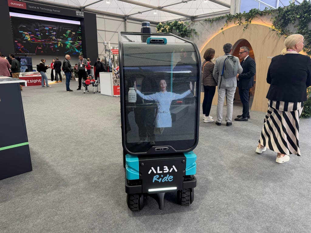 Alba Ride's autonomous vehicles can display directions on the front. Abrar Al-Heeti/CNET