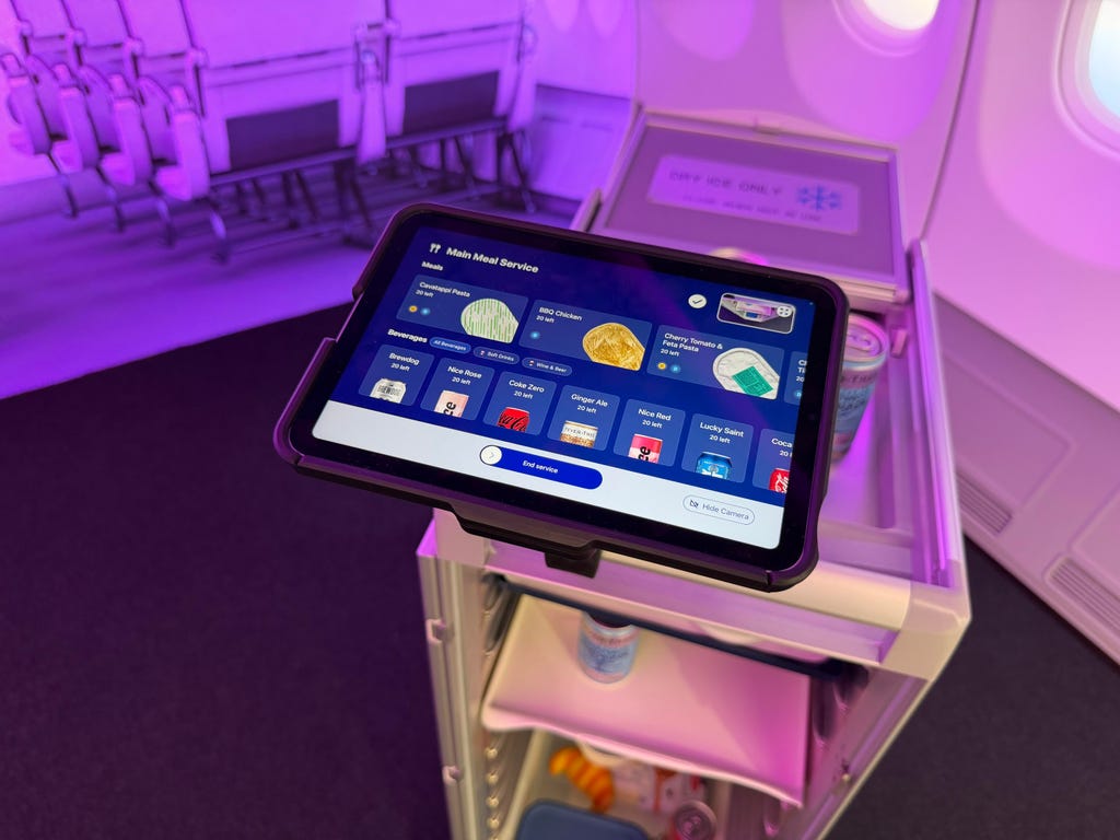 Airbus' prototype app will show how much food is left on a flight and make it easier to track what was consumed. Abrar Al-Heeti/CNET
