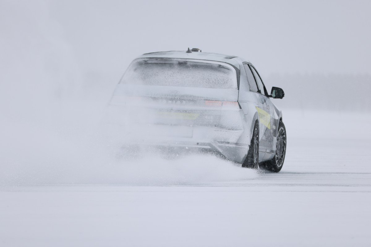 My time testing those products all happened on the ice, a stellar challenge for both car and driver. I started, though, with the fruit of someone else’s engineering: an Ioniq 5. Hyundai’s retrofuturistic EV is a great machine, but not exactly what I would choose for a day of sliding around.