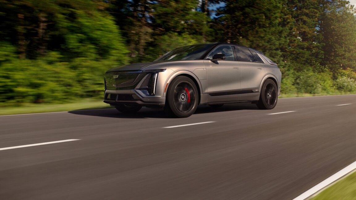 As with other Cadillac V-series cars, you can expect a much higher power output than the base models. In this case, that's a hefty 615 hp (459 kW) and 650 lb-ft (880 Nm)—not quite double the output of the single-motor Lyriq we drove back in 2023. The Lyriq-V uses a pair of motors to achieve that output, powered by the same 102 kWh battery pack as in the normal Lyriq.